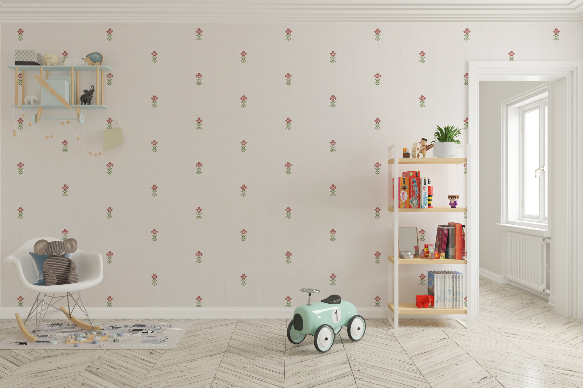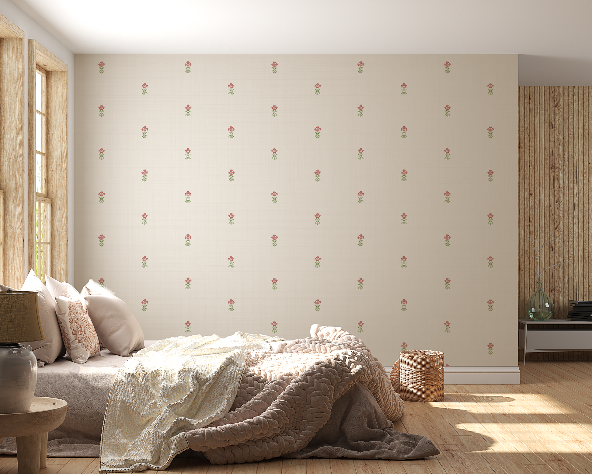 A clean and minimal floral wallpaper features a refined design that adds a touch of elegance and freshness to any room. The pattern showcases delicate elements like soft petals, graceful leaves, and slender stems, thoughtfully arranged with plenty of negative space to preserve simplicity and balance. This understated design allows each floral detail to stand out while maintaining a serene and airy feel. Its subtle beauty creates a calming atmosphere, making it a versatile choice that complements various interior styles, from modern to traditional, enhancing the space with natural elegance.