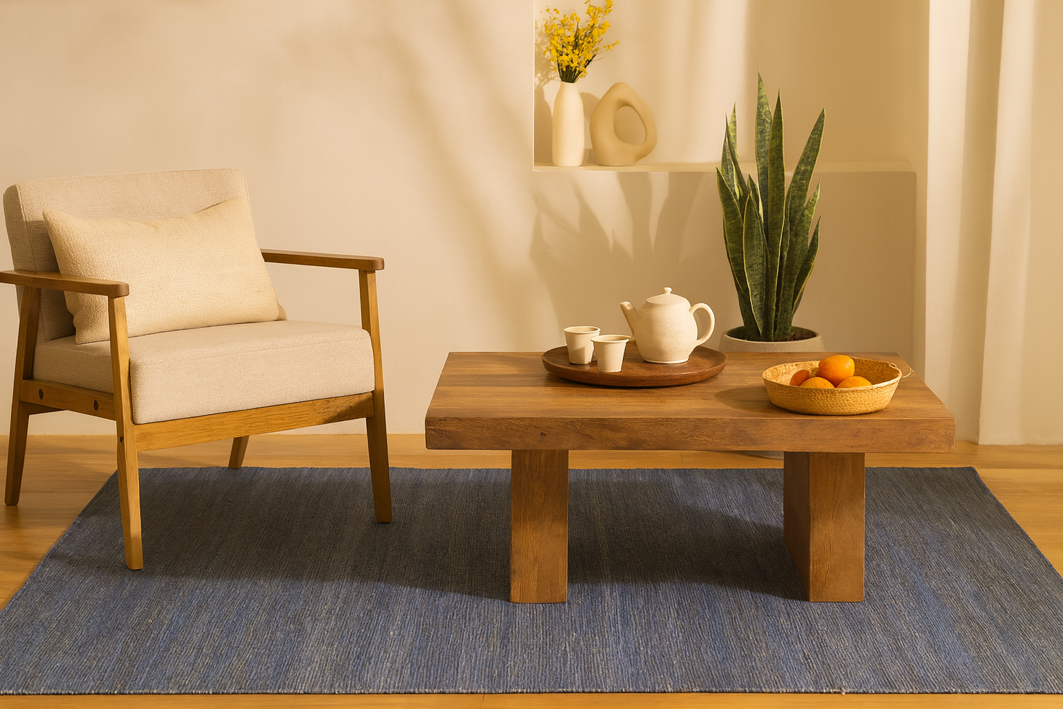 This handwoven rug brings a refined simplicity with its deep blue tones and natural texture. Crafted entirely from jute, it offers both durability and an organic aesthetic, making it a versatile choice for contemporary as well as rustic interiors. The subtle weave variations add character and depth, ensuring that no two pieces are exactly alike. Perfect for living rooms, bedrooms, or study spaces, this rug adds a calm and grounded feel to any setting.