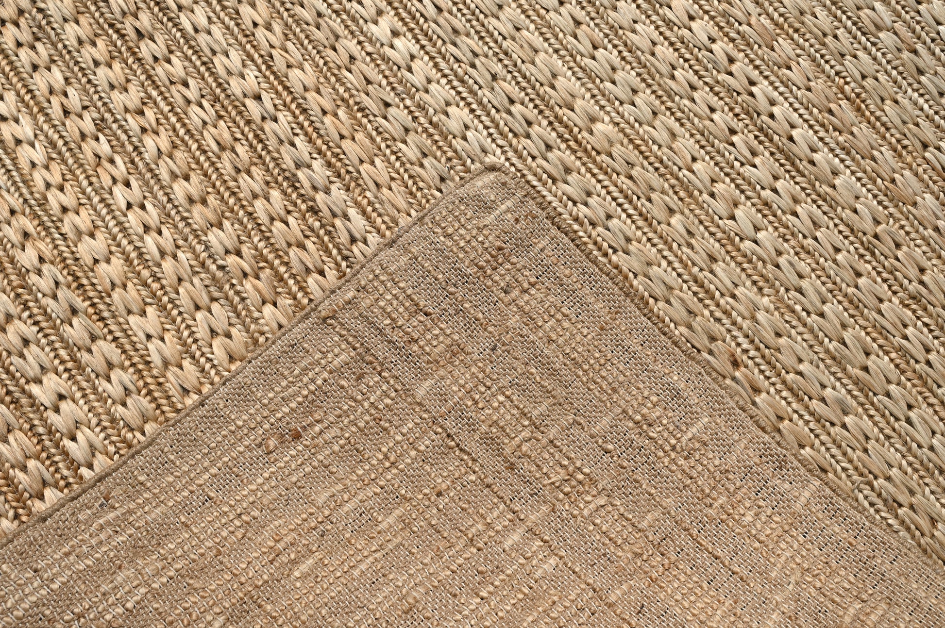 This natural jute rug features a beautifully textured linear weave in warm beige tones, adding both character and durability to any space. Its handcrafted detailing highlights the organic appeal of jute while maintaining a clean and structured look. With a substantial build and medium thickness, it is perfect for high-traffic areas such as living rooms, dining spaces, or hallways where style and strength are equally important.