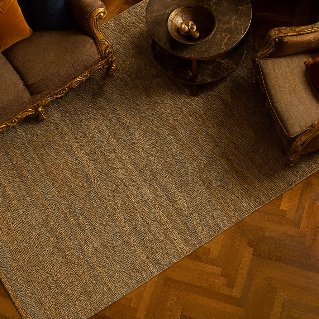 This handwoven rug embraces a natural aesthetic with its earthy brown-grey tones and organic jute texture. Simple yet refined, it is versatile enough to complement both rustic and contemporary spaces. Lightweight and durable, it works well in living rooms, bedrooms, or casual lounge areas, bringing an understated charm and warmth to the floor.
