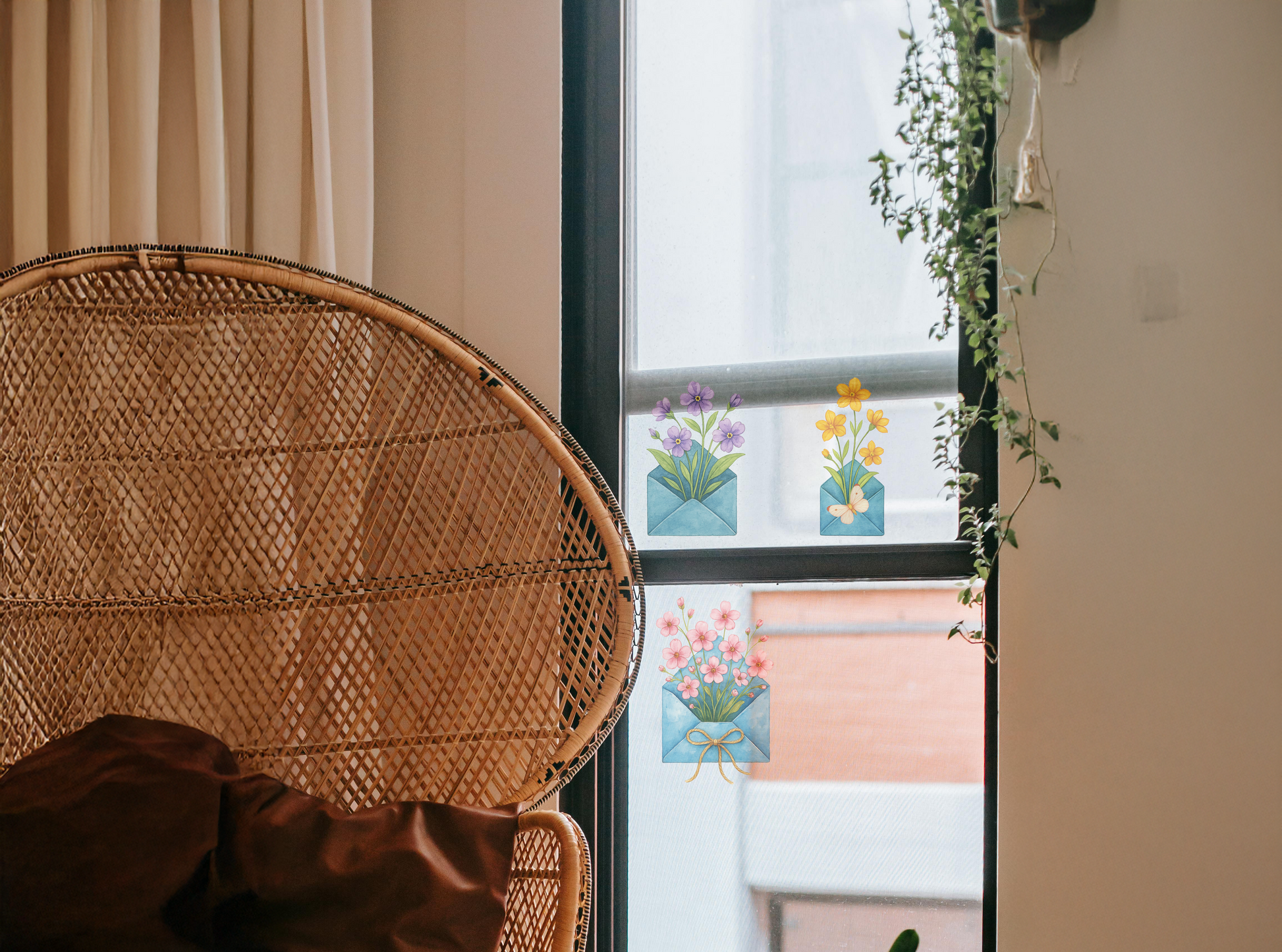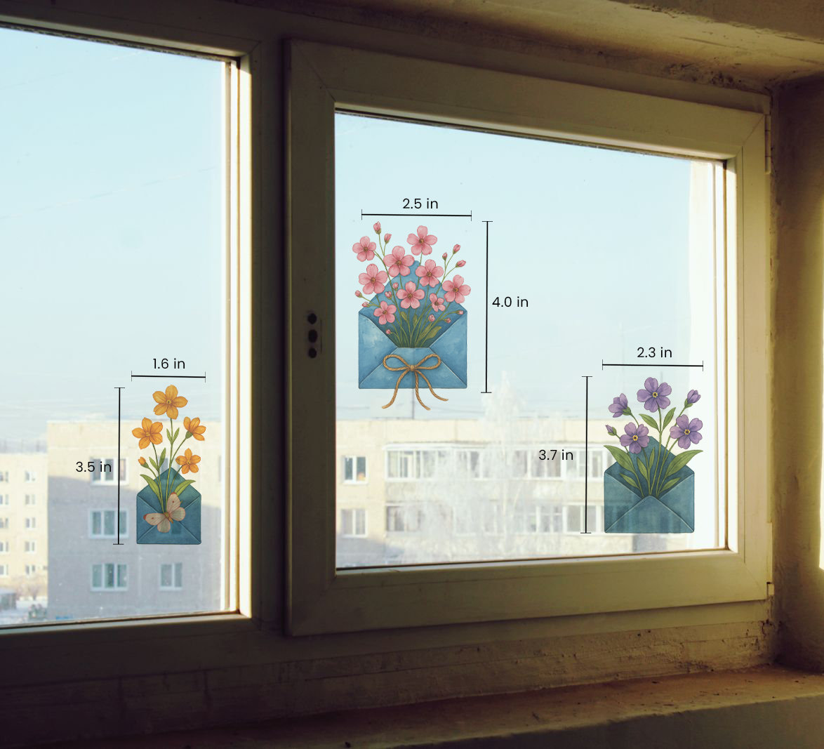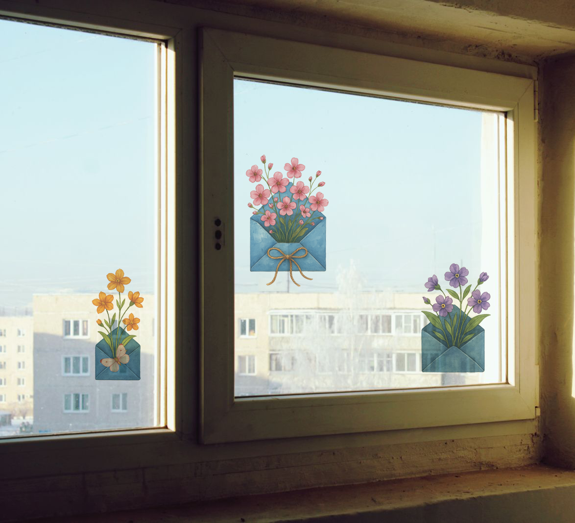 The Floral Letters set beautifully blends the charm of handwritten notes with nature’s grace. Each decal features an open blue envelope brimming with graceful flowers — violet, golden-yellow, and soft pink — paired with green foliage, a fluttering butterfly, or tied with a rustic cord. Radiating elegance and joy, these decals evoke the sentiment of cherished messages adorned with fresh, vibrant accents.
