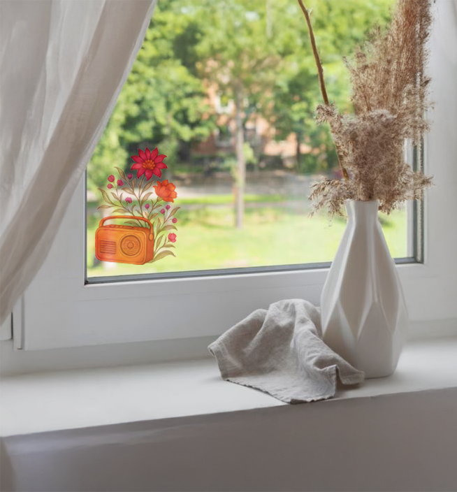 This charming design combines the nostalgia of a vintage radio with the liveliness of blooming flowers. Warm orange tones of the radio pair beautifully with magenta, pink, and orange blossoms, set against soft green foliage. A perfect piece to evoke memories and brighten any corner with music and nature-inspired elegance.Dimension: