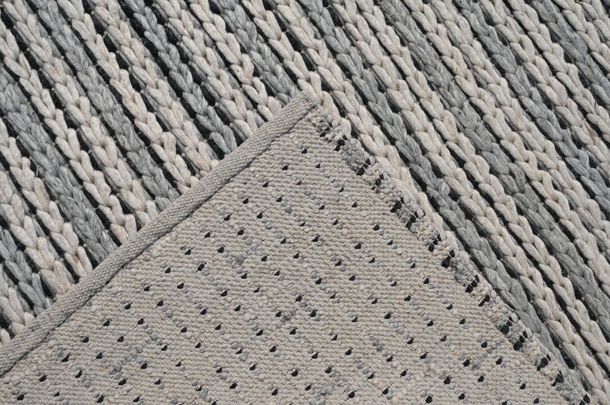 This handwoven flatweave rug features a clean striped pattern in soft grey and natural tones, offering a modern yet timeless appeal. Made from zero count New Zealand wool, it provides superior durability, softness, and comfort underfoot. The 10 mm thickness gives it a substantial feel while maintaining the easy-to-handle qualities of a flatweave. Perfect for contemporary homes, it enhances living rooms, dining areas, or offices with understated elegance and refined texture.